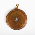 A gold and diamond single stone set circular pendant locket, the front star set with a circular cut diamond to the centre within an acanthus wreath surround, the interior with glazed locket compartments, unmarked, weight 7.1g, diameter 2.7cm.