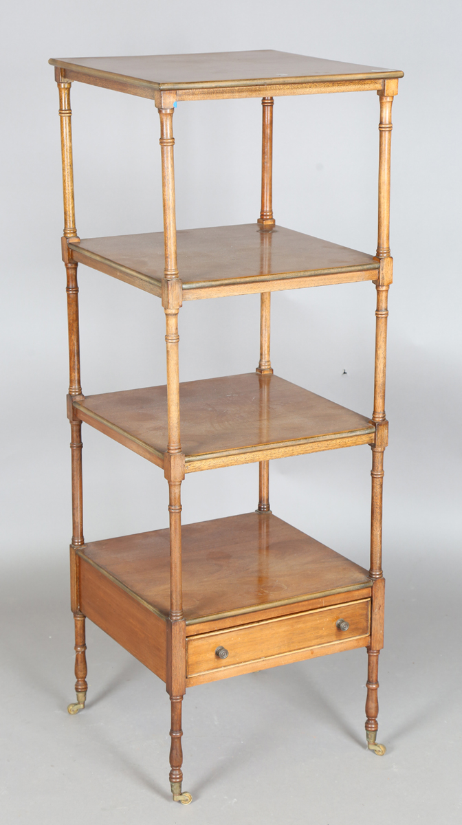 A 20th century walnut four-tier whatnot, fitted with a single drawer, height 129cm, width 47cm, depth 47cm.