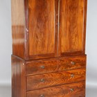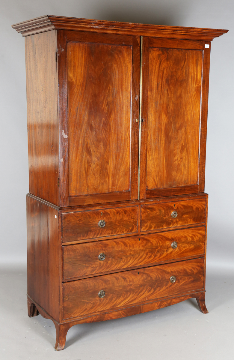 A George IV mahogany linen press, the two panelled doors above two dummy drawers and two further drawers, height 205cm, width 132cm, depth 63cm (alterations).