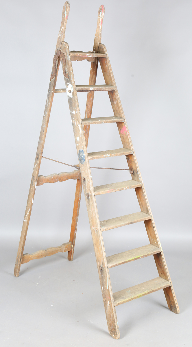 An early 20th century pine folding step ladder by Simplex, height 198cm, width 53cm.