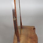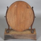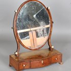 A George III mahogany oval swing frame mirror, the chequer banded base fitted with three drawers, height 61cm, width 48cm.