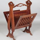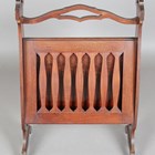 An early 20th century mahogany 'Patent' magazine rack with hinged and pierced sides, raised on shaped supports, height 72cm, width 49cm.