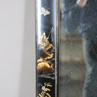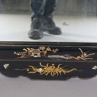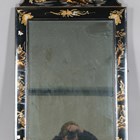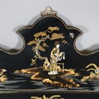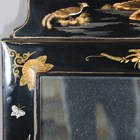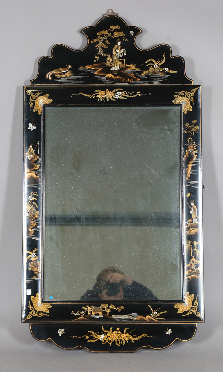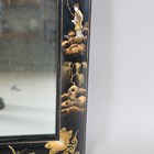 A mid-20th century chinoiserie wall mirror of shaped outline, decorated in gilt on a black ground, 120cm x 64cm.