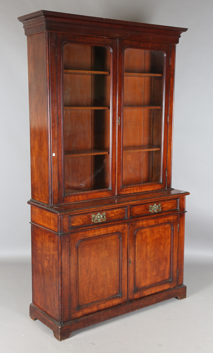 A late Victorian mahogany bookcase cabinet, the glazed top above drawers and cupboards, height 218cm, width 126cm, depth 46cm.