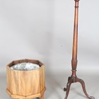 A George III mahogany octagonal wine cooler, converted to a planter, height 48cm, width 47cm (alterations), together with a 20th century mahogany torchère plant stand, height 137cm.