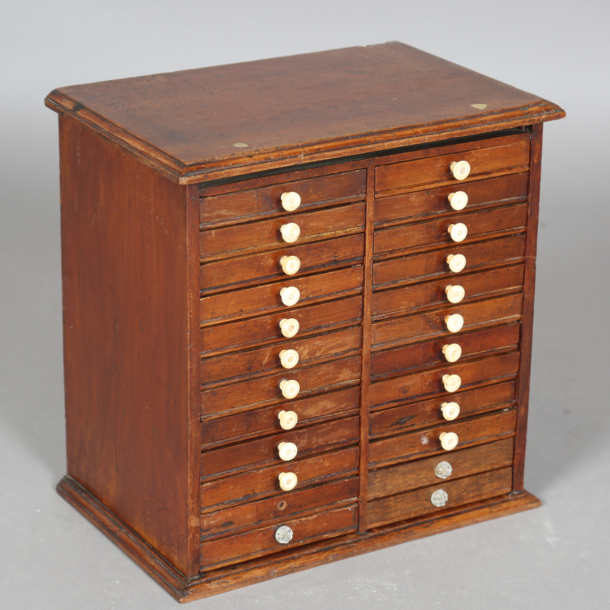 A late 19th century walnut table-top collector's chest, fitted with twenty-four drawers, height 31cm, width 30cm, depth 20cm.