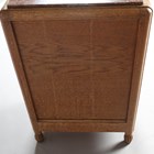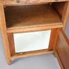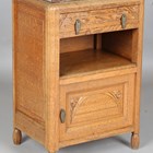 A French Art Deco oak bedside cabinet, fitted with a rouge marble top, height 69cm, width 46cm, depth 34cm.