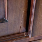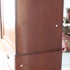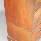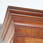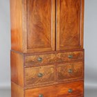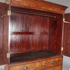 A George III mahogany linen press with line inlaid borders, fitted with two doors and four drawers, height 216cm, width 129cm, depth 58cm.