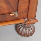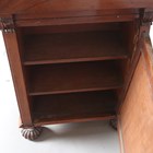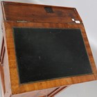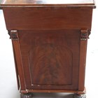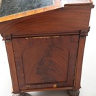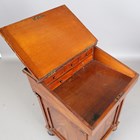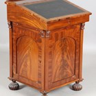 An early Victorian mahogany Davenport, the sliding top inset with a black leather writing slope and a pair of slides, the sides fitted with cupboard doors, height 86cm, width 57cm, depth 57cm (faults).