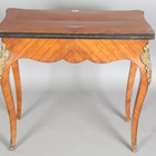 A 19th century Rococo Revival kingwood and gilt metal mounted fold-over card table, height 75cm, width 80cm, depth 40cm.