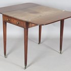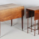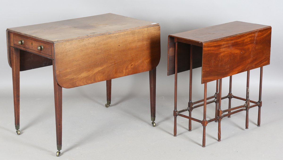 A George III mahogany Pembroke table, height 72cm, width 84cm, together with a 19th century mahogany 'spider' Sutherland table, height 70cm, width 69cm.
