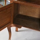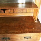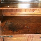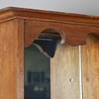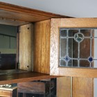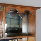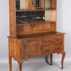 An early 20th century Arts and Crafts oak dresser, the back with a glazed cabinet, the base with cupboard and drawers, height 186cm, width 137cm, depth 49cm.