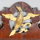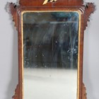 A George III mahogany fretwork wall mirror with a gilt carved phoenix surmount, 86cm x 51cm (some faults).