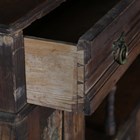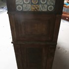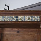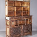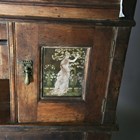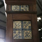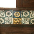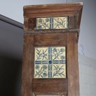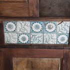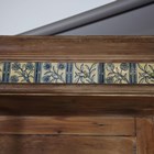 A late Victorian Aesthetic Movement pine dresser, in the manner of Morris & Co, inset with Longden pattern ceramic tiles designed by Philip Webb, height 211cm, width 151cm, depth 47cm (faults).