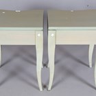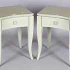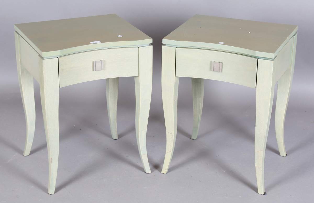 A pair of modern green painted bedside tables, each fitted with a single drawer, height 61cm, width 45cm, depth 40cm.