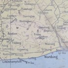 A mid-20th century Formica and ebonized coffee table, the top with an RAC map of the south-east coast of England, height 48cm, width 84cm, depth 51cm.