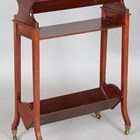 An Edwardian mahogany book trough, raised on splayed legs and castors, height 77cm, width 55cm, depth 20cm.