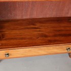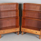 A pair of 20th century Regency style mahogany waterfall open bookcases with gallery backs and single drawers, height 104cm, width 70cm, depth 26cm.