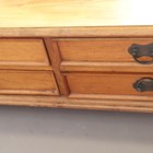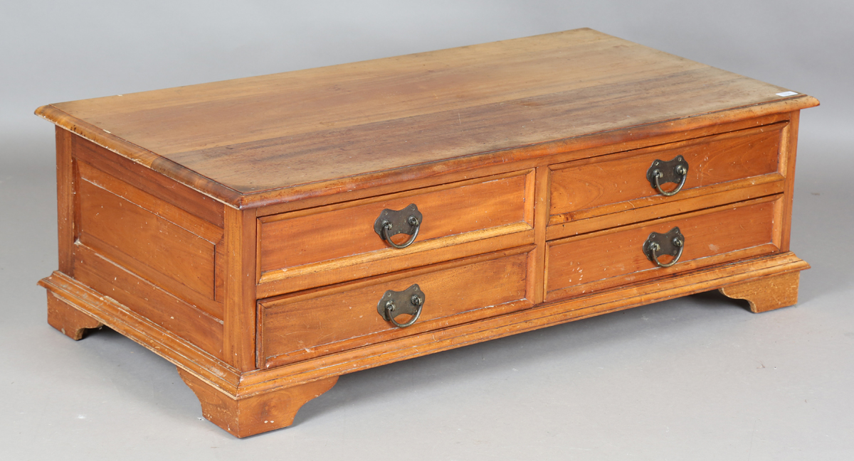 A 20th century mahogany coffee table, fitted with eight opposing drawers, on bracket feet, height 42cm, width 128cm, depth 67cm.