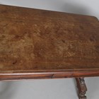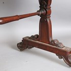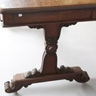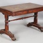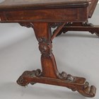 A Regency mahogany library table, in the manner of Gillows of Lancaster, fitted with two frieze drawers, raised on finely carved supports, height 75cm, width 112cm, depth 66cm.