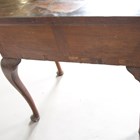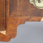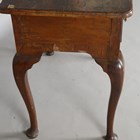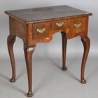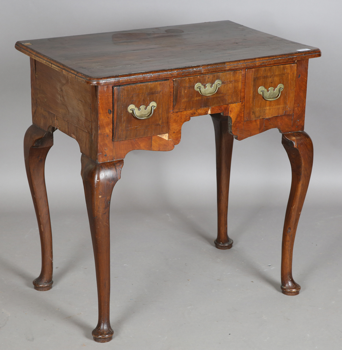 A Queen Anne walnut lowboy, the crossbanded top above three drawers, on cabriole legs and pad feet, height 78cm, width 77cm, depth 51cm (faults).