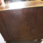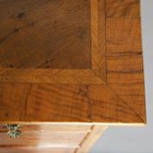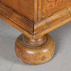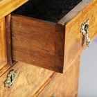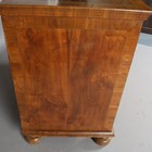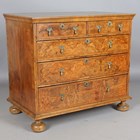 A Queen Anne walnut chest of oak-lined drawers with feather and crossbanded borders, on later bun feet, height 87cm, width 96cm, depth 56cm (alterations and restoration).