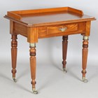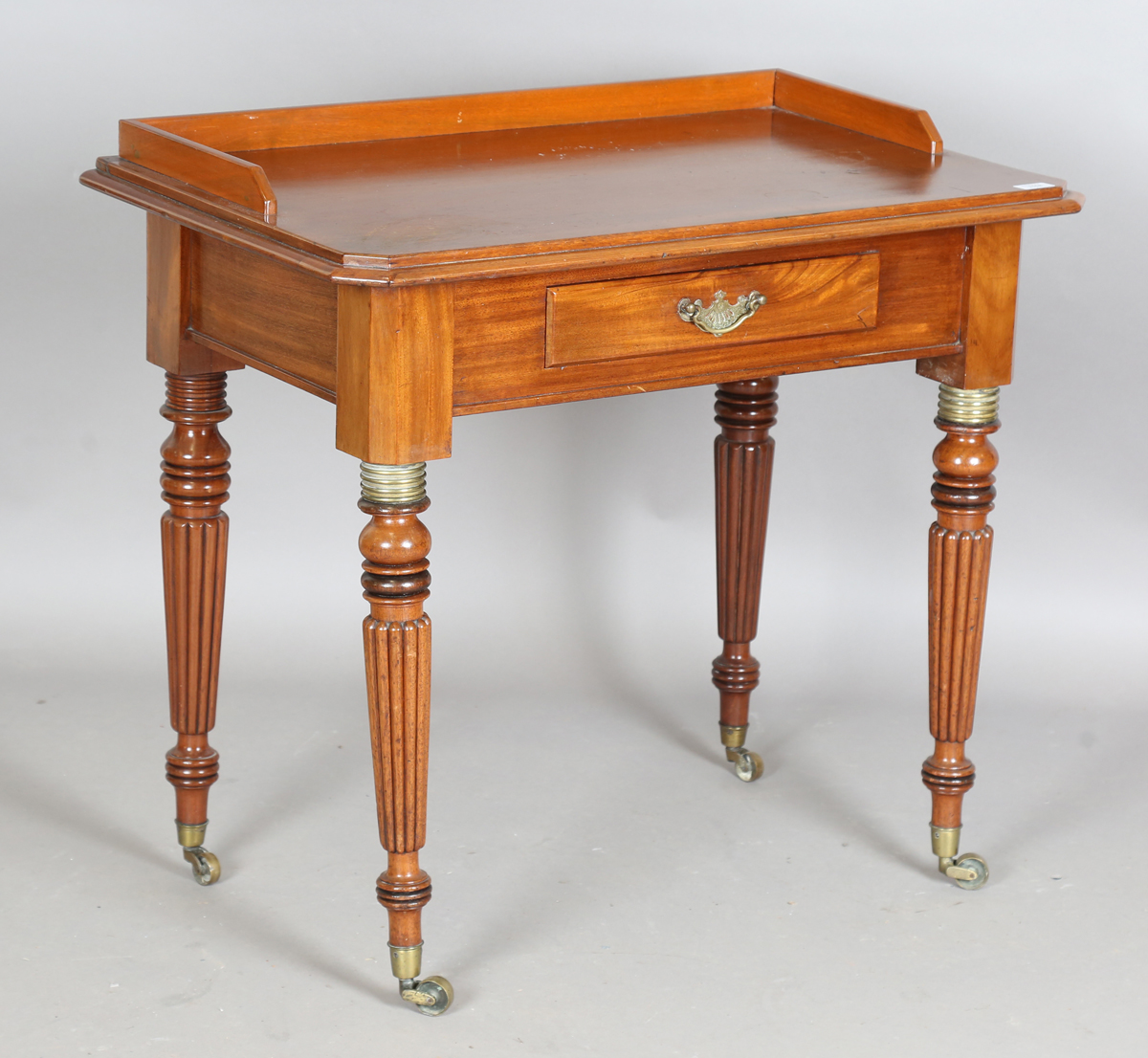 A Victorian mahogany side table, the galleried top above a drawer and brass mounted legs, height 79cm, width 87cm, depth 53cm.