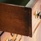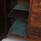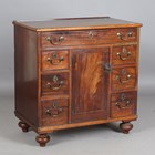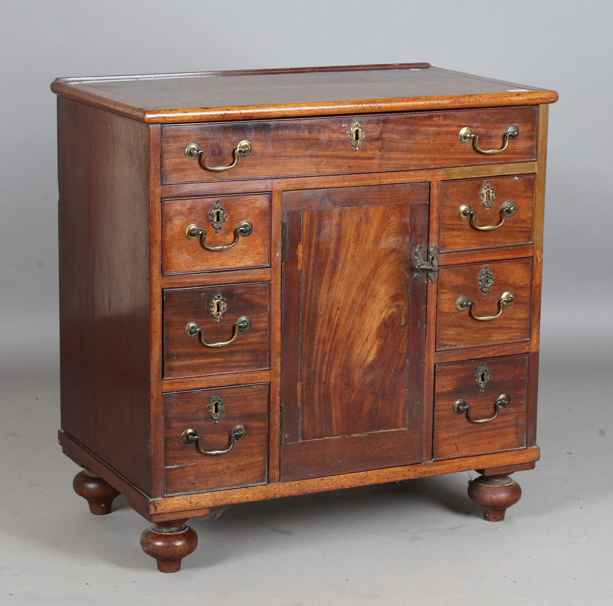 A George III mahogany chest, fitted with a central door within an arrangement of oak-lined drawers, height 81cm, width 79cm, depth 47cm (alterations).
