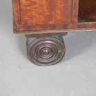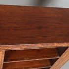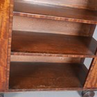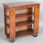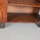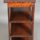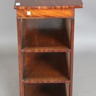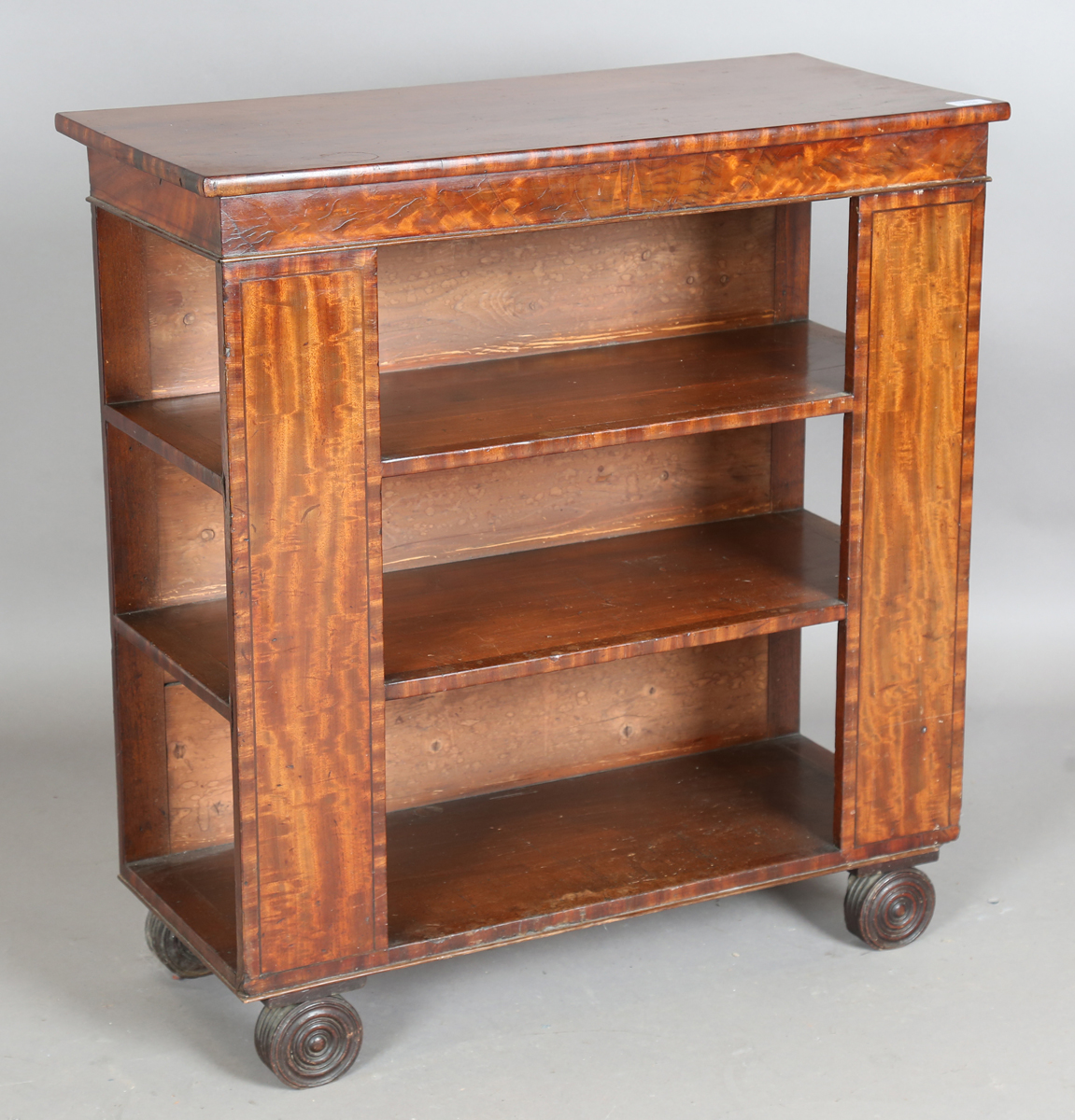 An unusual Regency mahogany open bookcase with ebony line inlaid borders, raised on turned disc feet, height 82cm, width 78cm, depth 36cm.