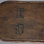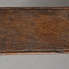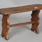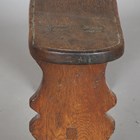 A small late 19th century French provincial oak stool/bench with shaped supports, height 35cm, width 66cm, depth 18cm.
