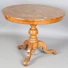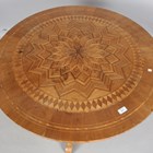 A late 19th century Italian parquetry circular centre table, the top with central sunburst design within a chequer banded border, raised on a tripod base, height 75cm, diameter 96cm.