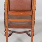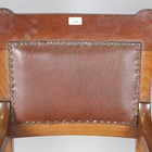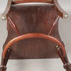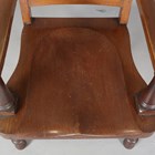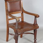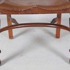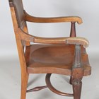 An Edwardian mahogany elbow chair with a shaped solid panel seat and a crinoline stretcher, height 105cm, width 58cm, depth 60cm.