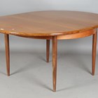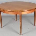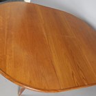 A mid-20th century G-Plan teak extending dining table, the circular top with integral leaf, on tapering legs, height 73cm, diameter 122cm.