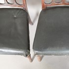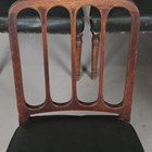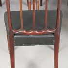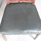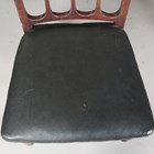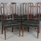 A set of six late George III mahogany comb back dining chairs with black leatherette seats, on turned tapering legs, height 87cm, width 51cm, depth 50cm.