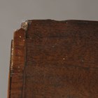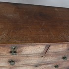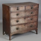 A Regency mahogany chest of oak-lined drawers with pressed brass handles, height 98cm, width 101cm, depth 50cm (some faults).