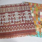 An Indonesian ikat weaving, decorated with bands of stylized figures and foliage, 226cm x 130cm, together with a cotton patchwork bed cover, 240cm x 180cm. Provenance: from the personal collection of Monika Wengraf, Arcade Gallery, Royal Arcade, London.