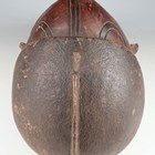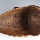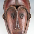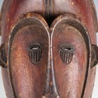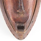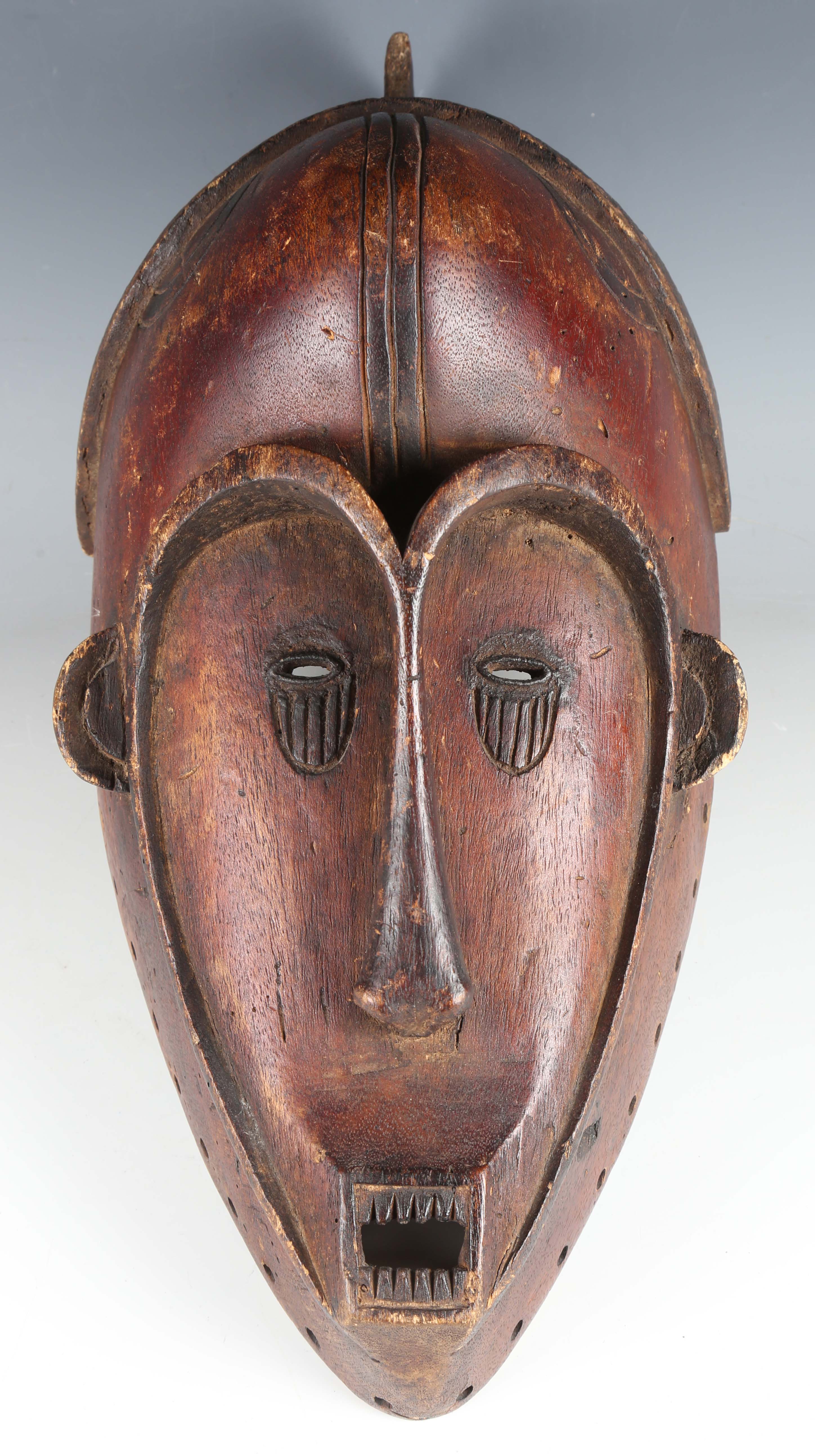 An African carved softwood mask with heart shaped facial recess, length 43cm.
