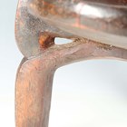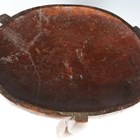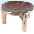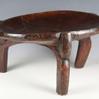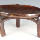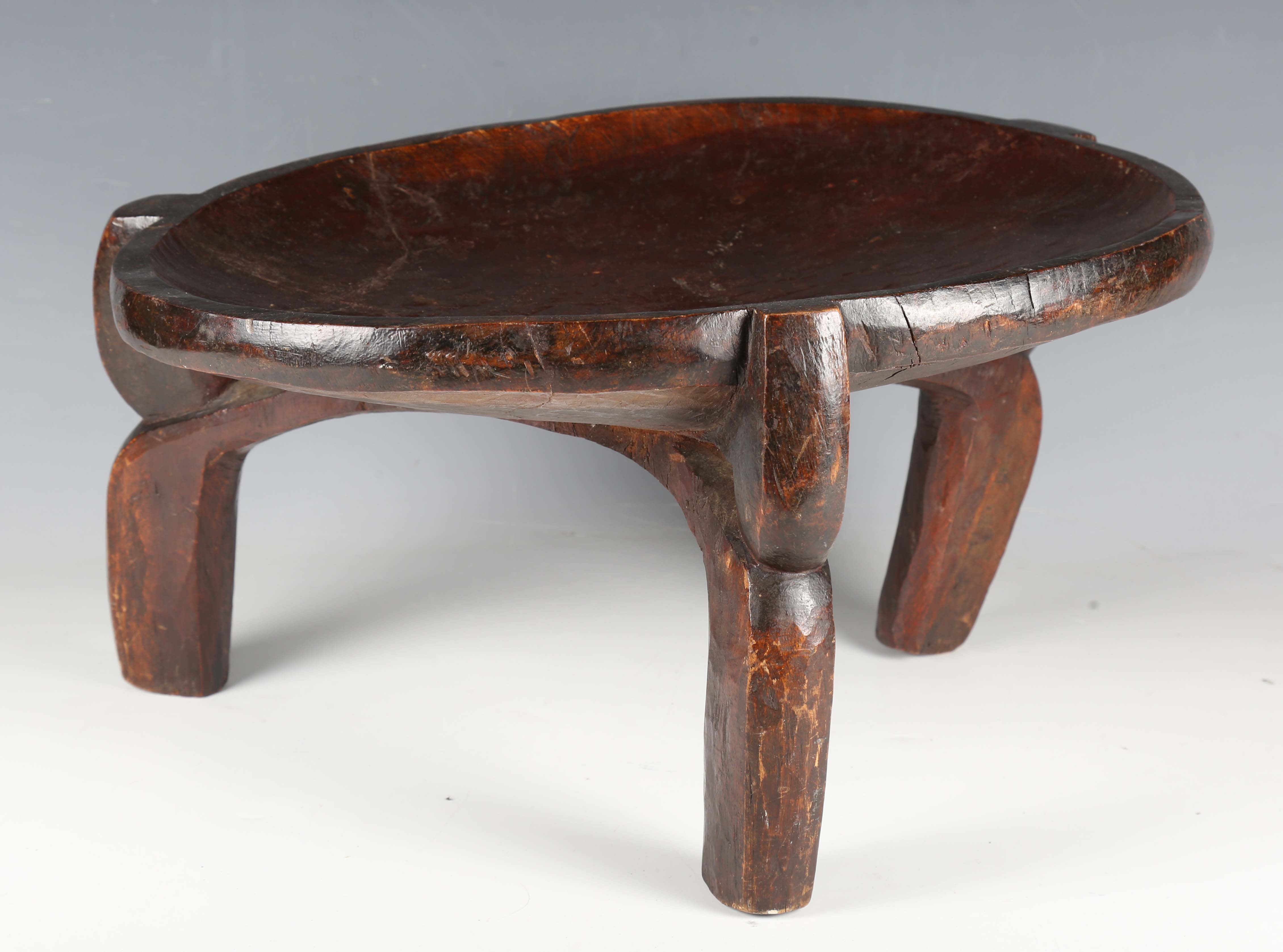 A Hehe darkly patinated carved hardwood stool, Tanzania, raised on three shaped legs, width 43cm.