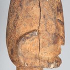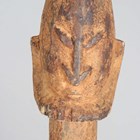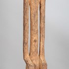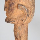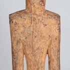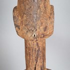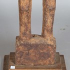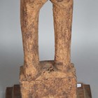 A Dogon carved ancestor figure, Mali, covered in a terracotta surface pigment, height 140cm, mounted on a wooden plinth.