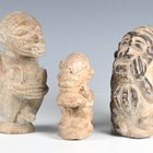 A Nomoli carved stone figure, Sierra Leone, height 19cm, together with two similar carved stone figures.