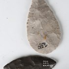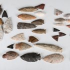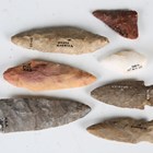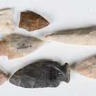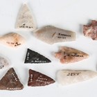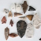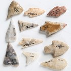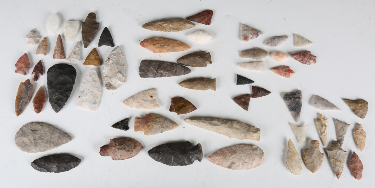 A collection of Native American stone, flint, obsidian and quartz arrowheads, mostly detailed in white and black ink with find sites and collection numbers, some with Hugh Fawcett Collection monograms. Provenance: the estate of a West Sussex collector.