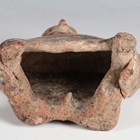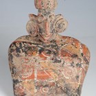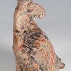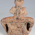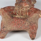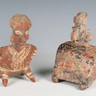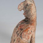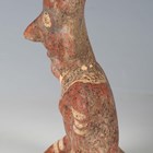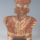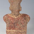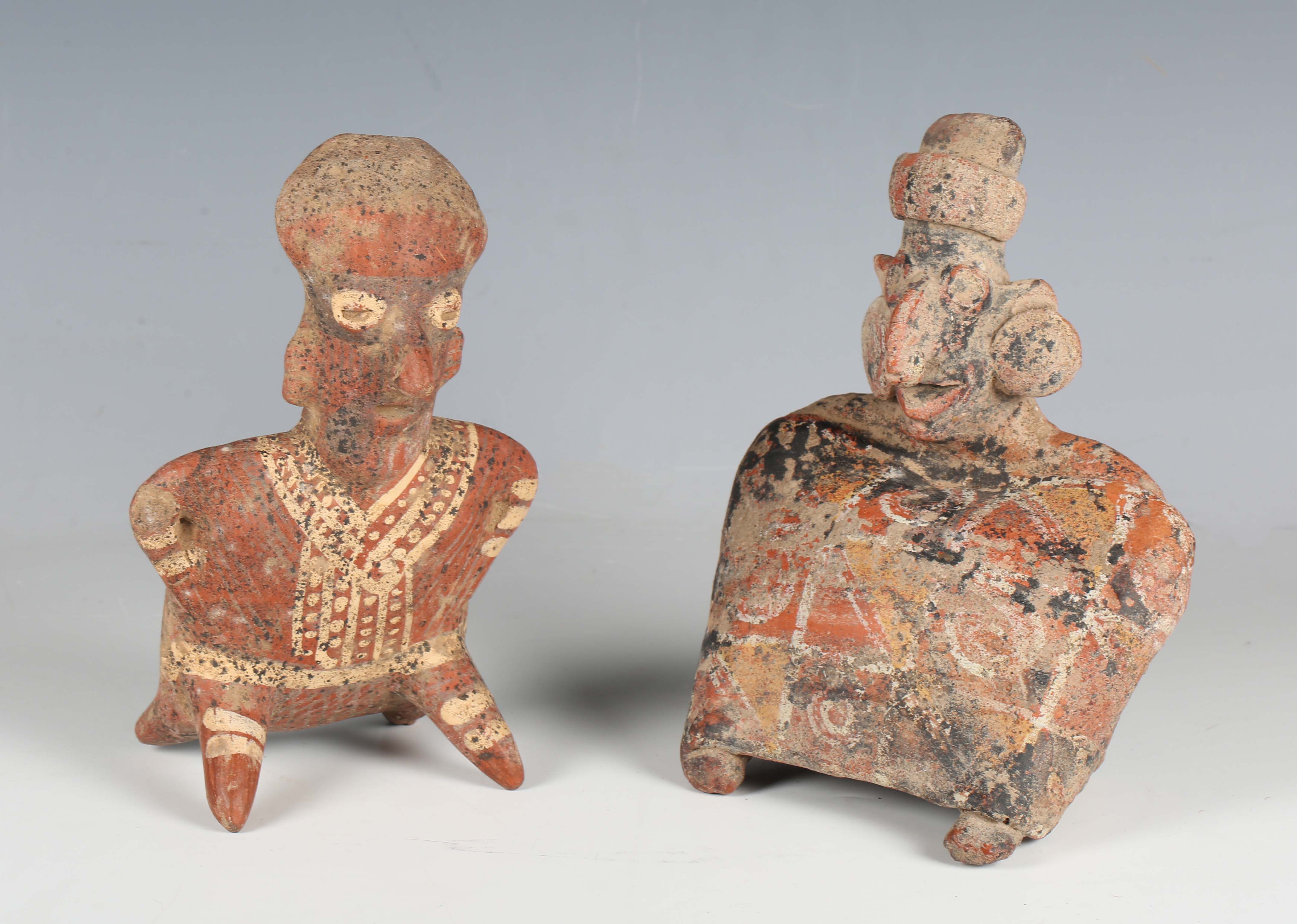 Two pre-Columbian Mexican Nayarit red pottery figures, circa 100BC-250AD, each with painted black and white line and dot decoration, heights 17.7cm.