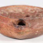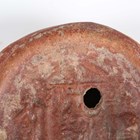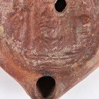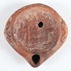 An ancient Roman terracotta oil lamp, circa 1st-2nd century AD, the top recess moulded in relief with the Roman god Zeus Serapis within a shrine, length 7.8cm.