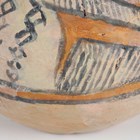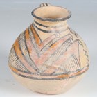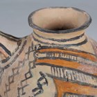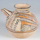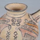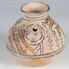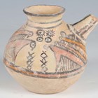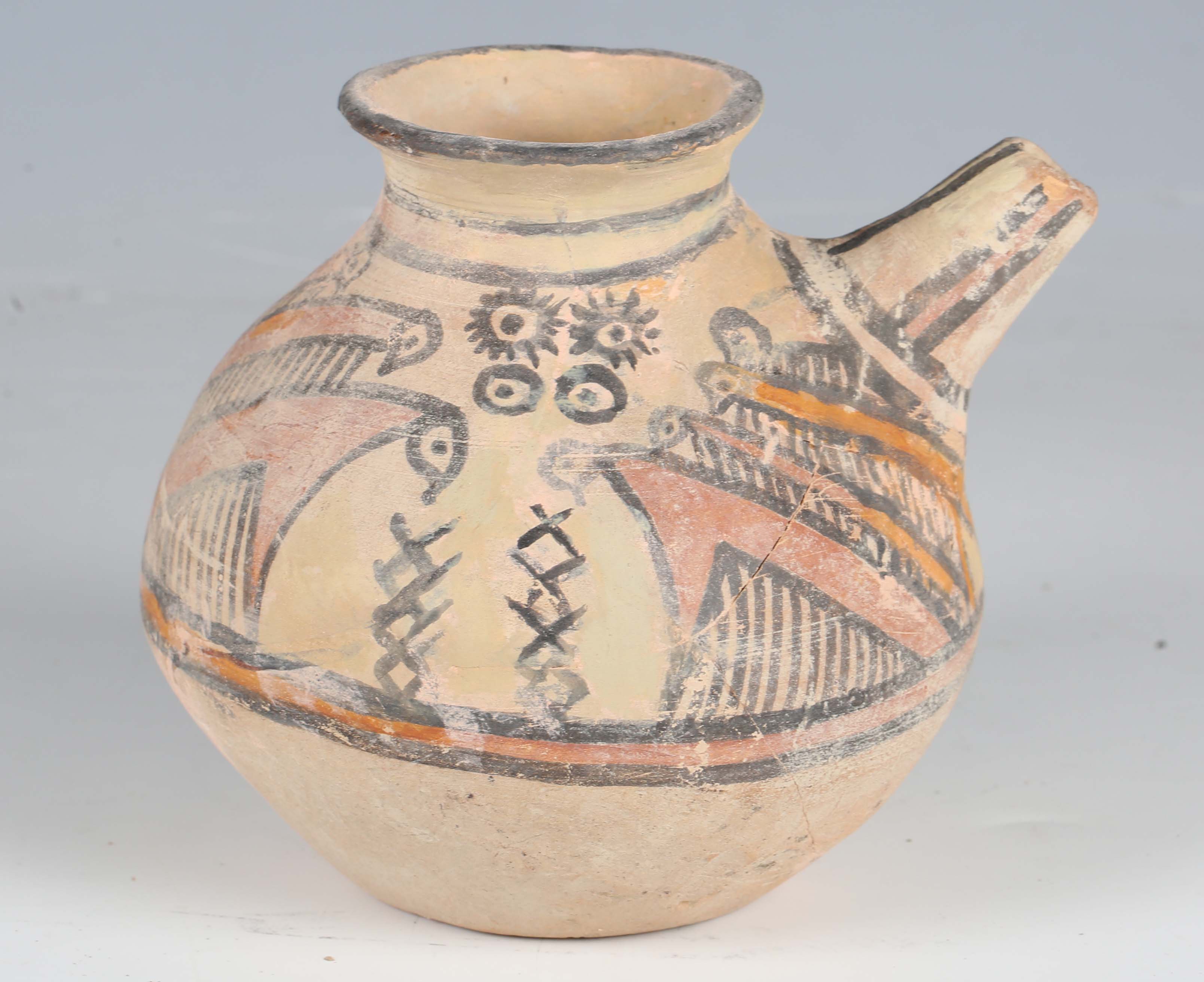 An Indus Valley pottery spouted jar, circa 2500-1900 BC, the spherical body decorated with stylized birds in orange and black pigments, height 11cm (repairs).