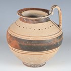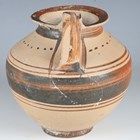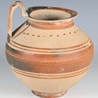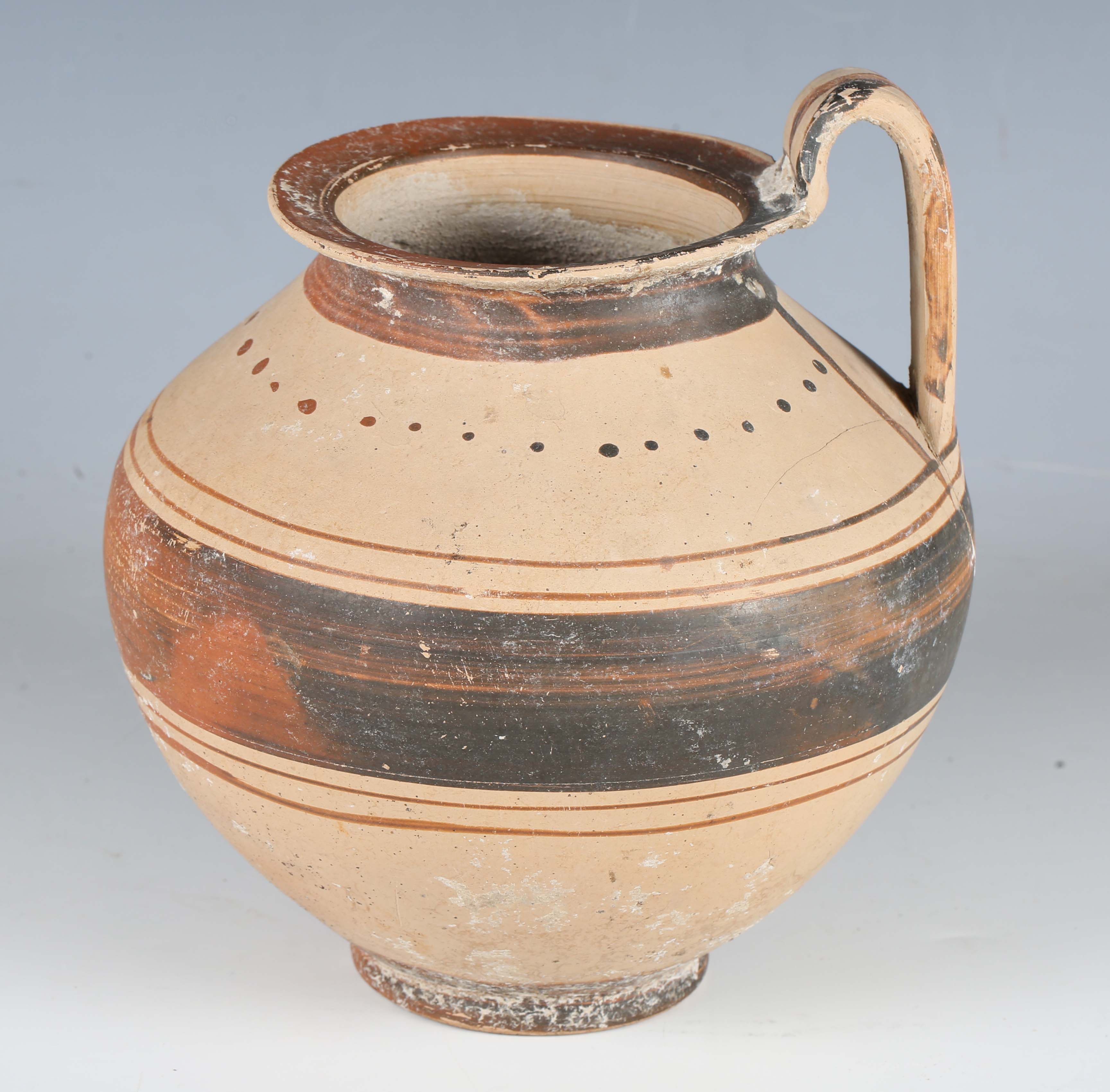 An ancient Greek/Cypriot pottery single-handled jar, the globular body decorated with dark brown bands and a series of dots, height 19cm (repairs).