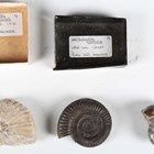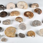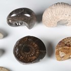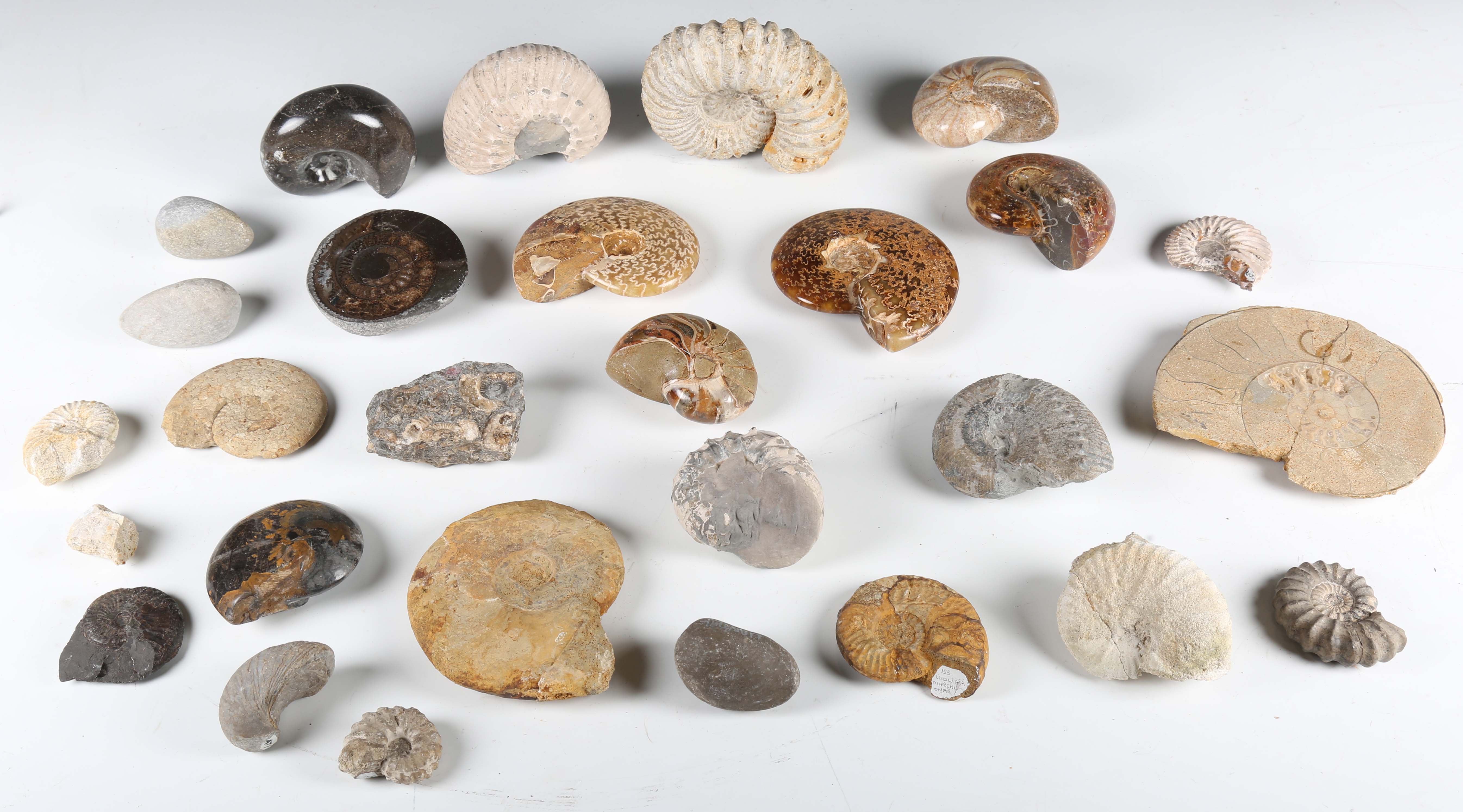 A collection of fossilized ammonite specimens, including some polished examples, width of largest 14cm.
