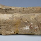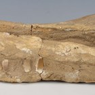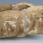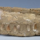 A fossil specimen of a mosasaur head, length 54cm (partly reconstructed).
