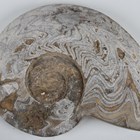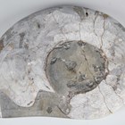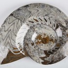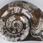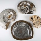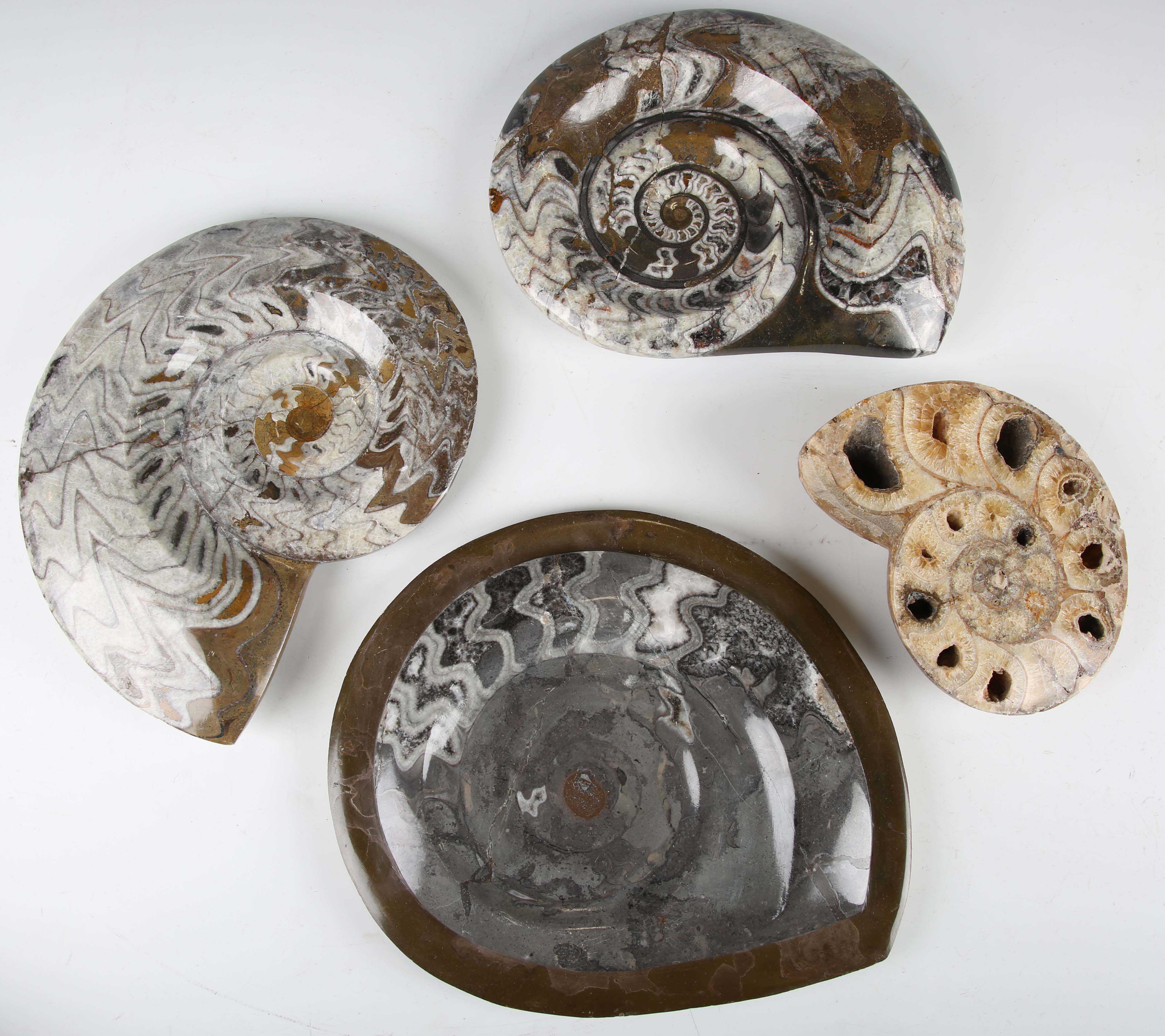 Two similar polished ammonite specimens, width 26cm, together with two other large ammonite specimens.