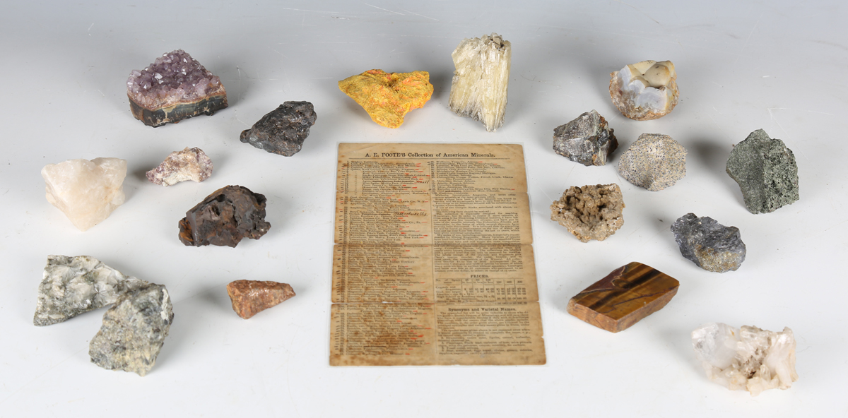 A collection of approximately 100 mineral specimens, all detailed and listed as the 'A.E. Footes' Collection of American Minerals', together with list.