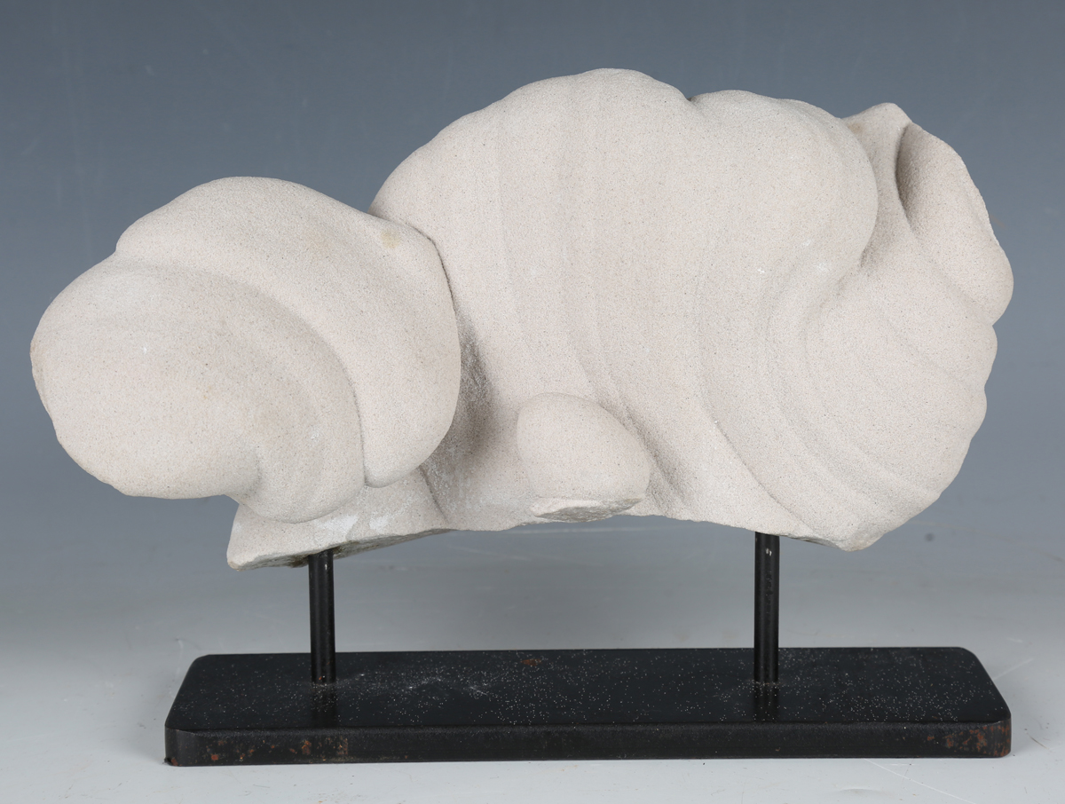 A gogotte mineral formation, Fontainebleu, France, Oligocene period, mounted to a metal display stand, width 31cm. Note: a gogotte is a mineral that has naturally formed over millennia, made up of small pieces of quartz held together by calcium carbonate.
